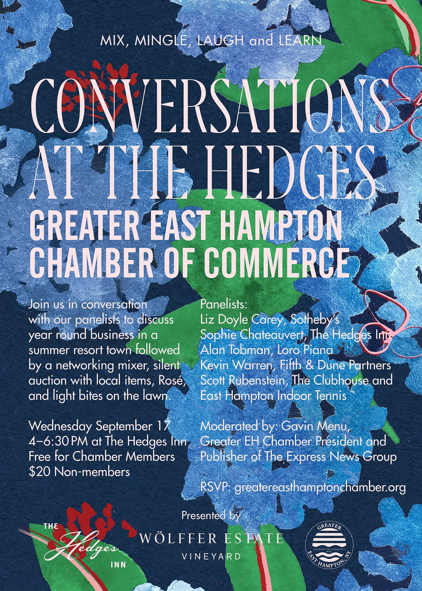 Complimentary coffee and tea will be served. Free for Greater East Hampton Chamber of Commerce members, with a $20 fee for non-members.